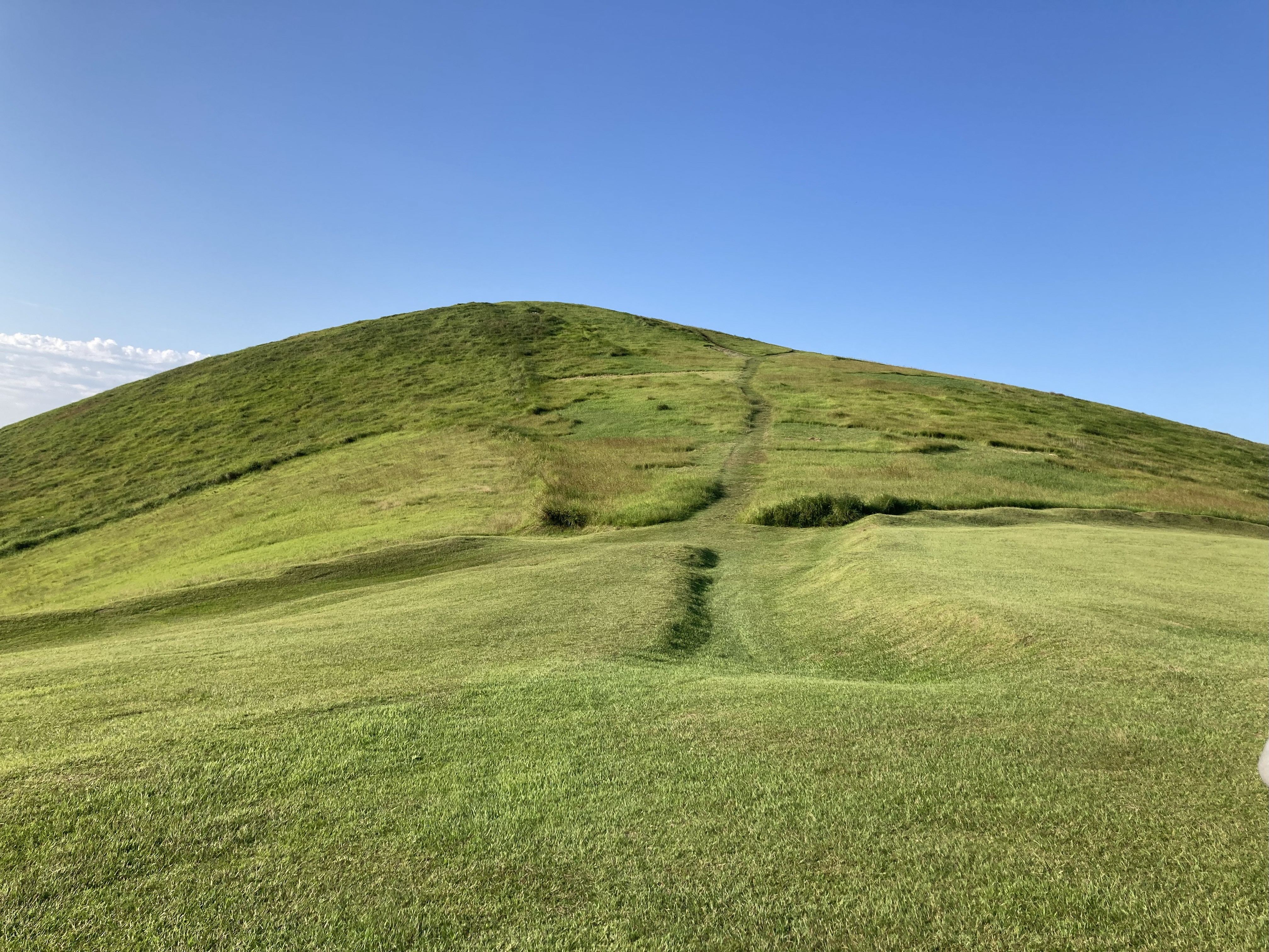 鬼岳の上部には木がまったく生えていなくて、綺麗に刈り込まれた芝生が山を覆っていて大変きれい。